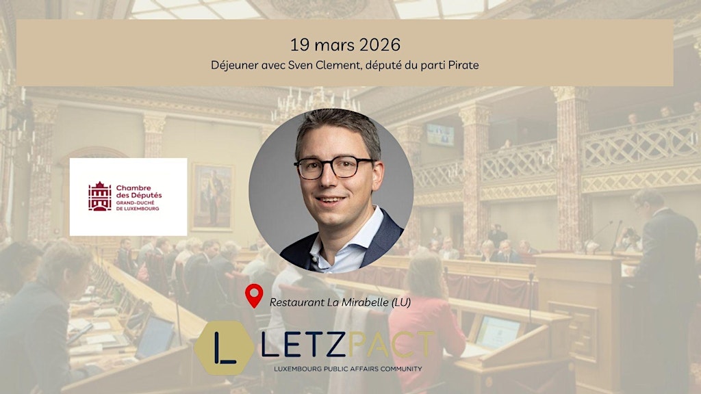 LetzPact a le plaisir de vous inviter à un déjeuner privé avec Sven Clément, député du parti Pirate, le jeudi 19 mars 2026.